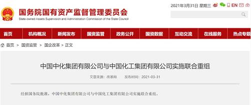 3月31日,经国务院批准,中国中化集团有限公司(以...